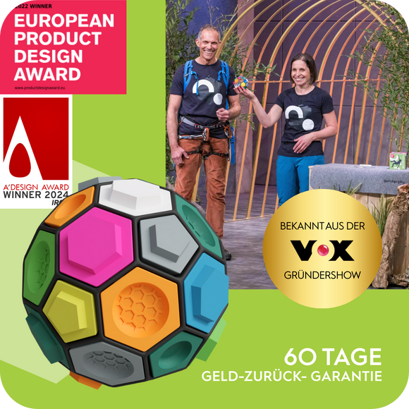 The Boulderball is the world's first portable bouldering game: trains finger strength, concentration and spatial thinking - anytime, anywhere.