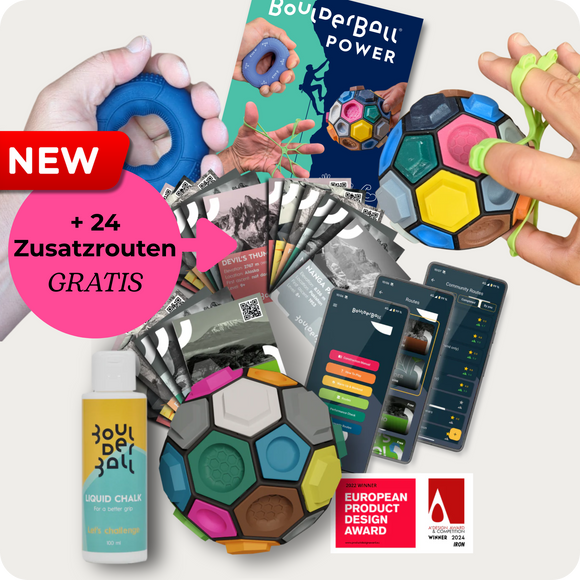 The Boulderball is the world's first portable bouldering game: trains finger strength, concentration and spatial thinking - anytime, anywhere.