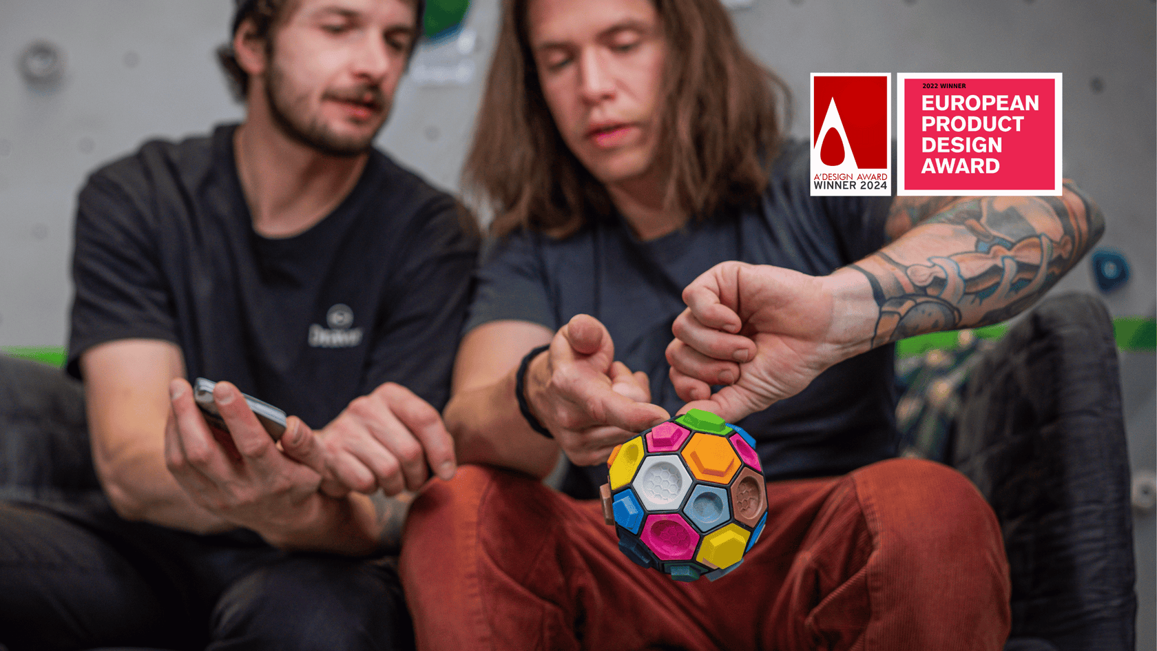 The Boulderball is the world's first portable bouldering game: trains finger strength, concentration and spatial thinking - anytime, anywhere.